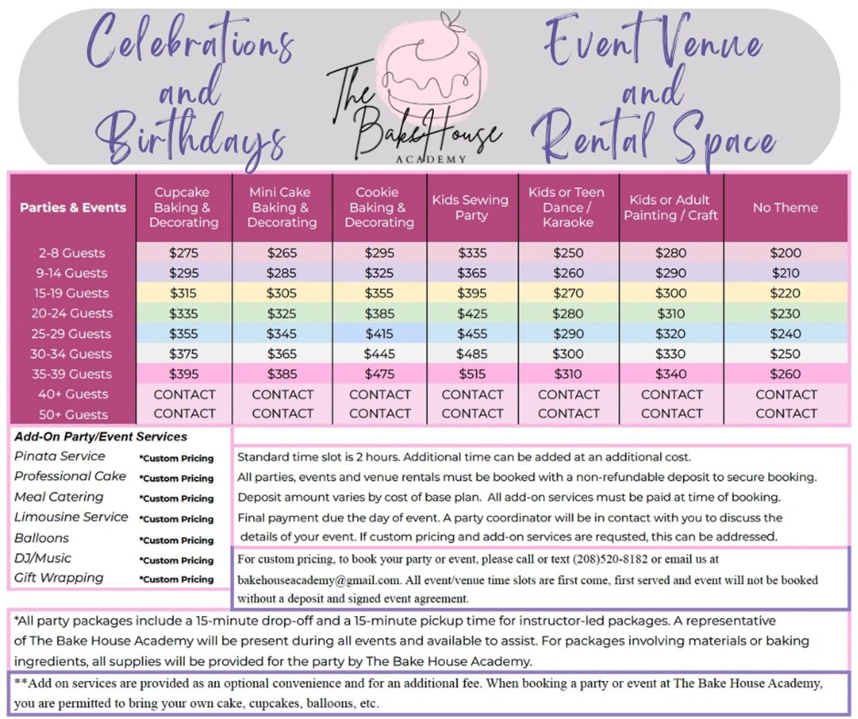 We offer instructor-led cupcake, cake and cookie classes, dance & karaoke, and more - birthday party style! From basic to extravagant, we customize the party just for you!